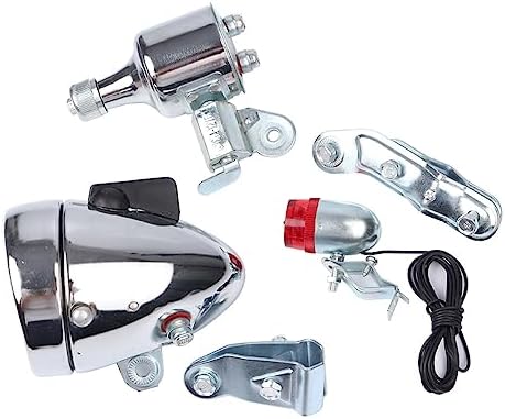 Fitment:Generator Dynamo Headlight Tail Light Lamp Kit for Cycling Bicycle Motorized BikeSpecification:Material: ChromeColor: SliverWeight: 712gFront light: 12x8x8 (cm)Tail light: 4.5x2.4x2.4 (cm)Dynamo output:12V 6WFeatures:Generator Light Set: Brand New and Headlight Tail Light Kit. Press your bicycle lamp on wheel when you need to use it, put the power head of generate electricity lamp coincide with the wheel, then Can drive the generator power generation through the FrictionFor Most Bicycles: This headlight and tail light kit For most Bike, for Cruiser, for Dirt Jumper, Electric Bike, Folding Bike, Kids Bike, Mountain Bike, Road Bike - Racing, Road Bike - Touring, Tricycle, etc. High Brightness: High brightness provides maximum visibility to enhance your road safety. Low power consumption and energy saving, long life span. plastic lens offer superior protection and a high impact resistance, ultra durableEasy to Install: TPut your generate electricity lamp to install it to your bicycle front fork or Bicycle Carrier after install front headlight and taillightThe friction generator head light kit fits most bicycles, Easy to installpackage:1pc Dynamo power supply1pc Head Lamp1pc Tail Lamp2pcs Fixing tools