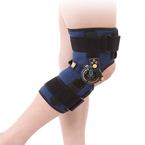 Adjustable (range of motion) hinged knee brace, knee brace for anterior cruciate ligament, joint stabilization, arthritic knee, sports injury recovery}