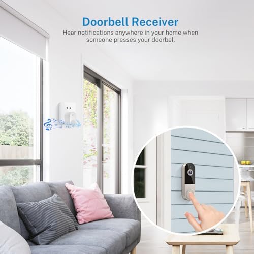 1080p Wireless WiFi Smart Video Doorbell Camera with doorbell Receiver, AI Human Detection, Night Vision, Two-Way Audio, 2.4G WiFi Only, Cloud Storage, Home Security System