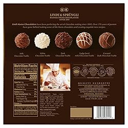 The information below is per-pack only 6.8 Ounces of Lindt Gourmet Chocolate Truffles Gift Box, Assorted Chocolate Truffles Assorted chocolates include: Dark Chocolate Truffles, Milk Chocolate Truffles, White Chocolate Truffles, Fudge Swirl Truffles and Caramel Dark Chocolate Truffles Gourmet chocolates are perfect for gifting and sharing with others Gift box packaging makes these chocolates ready-to-give Lindt chocolate embodies the passion and expert craftsmanship of Lindt Master Chocolatiers, delivering a unique chocolate experience that offers a distinctly smooth and rich gourmet taste