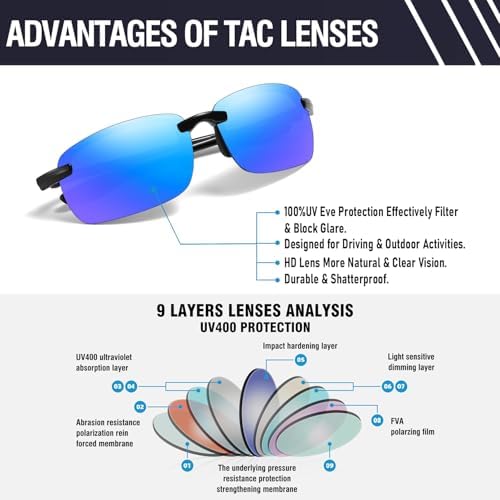 DUCO Sports Sunglasses for Men Women Lightweight Rimless Frame Polarized Sun Glasses Running Fishing Driving DC6003