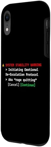 - A unique statement that says, "System Stability Warning: Initiating Emotional De-Escalation Protocol. Aka Rage Quitting". A funny computer error prompt meme for gaming frustration. Great for gamer teens, kids, and gamer girls.