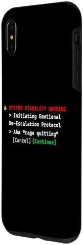 - A unique statement that says, "System Stability Warning: Initiating Emotional De-Escalation Protocol. Aka Rage Quitting". A funny computer error prompt meme for gaming frustration. Great for gamer teens, kids, and gamer girls.
