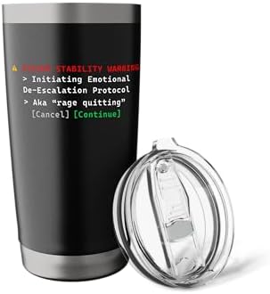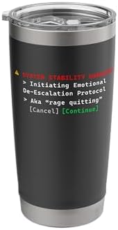 - A unique statement that says, "System Stability Warning: Initiating Emotional De-Escalation Protocol. Aka Rage Quitting". A funny computer error prompt meme for gaming frustration. Great for gamer teens, kids, and gamer girls.