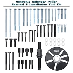 Newly Upgraded 59PCS Set: M16 x 2.0, M14 x 1.5, M12 x 1.5, 3/4-16, 5/8-18, 9/16-18, 1/2-20, 7/16-20; Screws M8 x 1.25 x 90mm, M8 x 1.25 x 60mm, M8 x 1.25 x 60mm, M10 x 1.5 x 40mm, M6 x 1.0 x 60mm; Screws UNC 5/16” x 6”, UNC 3/8” x 4-1/2”, UNF 5/16” x 3”, UNF 1/4" x 2-1/2”, UNF 3/8” x 1-1/2”, UNC 3/8” x 2”, UNC 3/8” x 3”, UNC 5/16” x 3-1/2”, UNC 3/8” x 2-1/2” and 1 x puller forcing screw, 1 x bearing puller plate (with 6 way slotted holes), 5 x washers, please carefully check your car's specifications. Removal & Installation Balancer Kit: This kit helps you remove and install worn or damaged harmonic balancers on vehicles efficiently, easy to change out a harmonic balancer. Its thrust bearing design ensures smooth operation. Make it quick and easy with no damage to any engine parts. Wide Application: With a number of metric and standard bolts so it works for most applications. Flywheel Remover, Crankshaft Pulley Removal, Steering Wheel Pulling Set to remove worn or damaged harmonic balancers on any vehicle. Tips: This kit does not fit all models, not includes M12 x 1.75 bolt and is not compatible with LT1 Gen 2 engines or 4.0L Chrysler engines (early 2000's Pacifica, 2008-2010 Chrysler T&C Limited, Dodge Grand Caravan) Premium Material: Made of high-quality heavy duty steel, rust-resistant, corrosion-resistant, strong hardness. Comes with a carrying case and a pair of gloves for you to wear when using the tool. Convenient to transport and store.