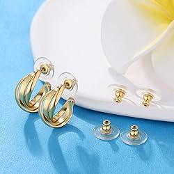 ✅Hypoallergenic& Comfort Materials: Made by quality brass materials solid 18K gold plated earring backs, GOOD for diamond studs, heavy earrings and droopy earrings, will not irritate your skin, this kind of normal earring backs are good choice for women men ✅ Upgraded Comfy & Secure: This upgraded earring locking backs are a decent luxury! High resistance to rust, corrosion and tarnishing and with 12mm backstop to earrings, very comfortable and secure to wear ✅Packaging Quantity: Total have 6pcs/3pairs included in the package. Perfect Choice for your all kinds of stud earrings and heavy droopy earrings. Also a good gifts share with your family and friends ✅Earring Backs Size: 0.47"/12mm x 0.25"/6mm, 0.08g lightweight and comfortable. This Standard size earring backs are easy to grasp, clutch earring backstop pad slide onto the posts easily, stay on the earrings no lost anymore ✅If you’re not satisfied with initial earrings backs replacements after purchased. Please feel free to contact us or amazon customer service team
