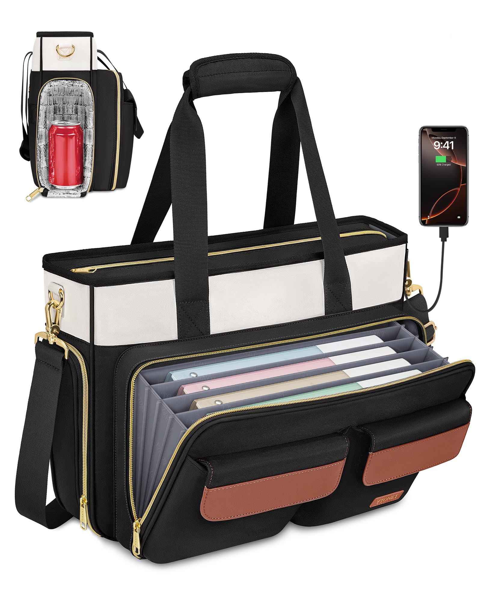 Teacher Tote Bag 15.6 Inch, Large Work Tote Bag With Laptop Compartments, Quilted Women Messenger Bag With Shoulder Strap for Office/Travel/School/Nursing Supplies Organizer,Black