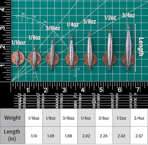 - Multi-Size Versatility: Available from 1/16oz to 3/4oz (7 sizes), these sinkers adapt effortlessly to any fishing style, suitable for both freshwater and light/inshore saltwater fishing.