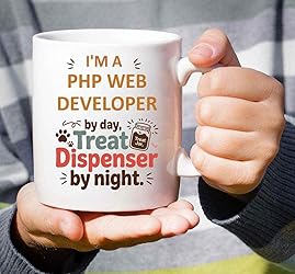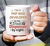 Humorous Gift Idea Funny Gift for a Php Web Developer, Pet Lovers, I'm a Php Web Developer By Day, Treat Dispenser By Night 11 Oz White Ceramic Coffee Mug