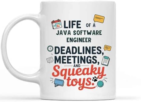 Gift Design Idea Funny Gift for a Java Software Engineer, Pet Lovers, Life of a Java Software Engineer Deadlines, Meetings, and Squeaky Toys 11 Oz White Ceramic Coffee Mug