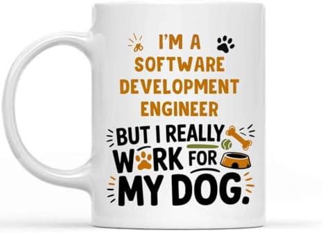 Gift Design Idea Funny Gift for a Software Development Engineer, Pet Lovers, I'm a Software Development Engineer, but i Really Work for my Dog 11 Oz White Ceramic Coffee Mug