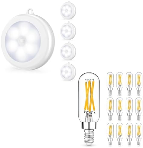 Bundle--2 Items: 4 Pack Motion Sensor LED Night Light Bundle with 12 Pack E12 LED Edison Bulbs,4W Equal 40W