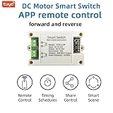 EASY TO USE: Only need a wireless router that can connect to the Internet to cooperate with Tuya app for convenient remote control of linear actuators and motors through WIFI wireless connectivity, and voice control can also be achieved through Alexa VOLTAGE RANGE: Operates on DC power from 7V to 32V with a maximum current rating of 10A for versatile application needs DIRECTIONAL CONTROL: Features forward and reverse operation capabilities, perfect for controlling linear actuators and motorized devices MOUNTING DESIGN: Compact housing with convenient screw terminals and mounting holes for easy installation and setup Timing Setting:You can set any specific time to turn the motor ON/OFF as you need.Such as Turn on/off on 12:30 noon every day or on weekdays. You still can set any inching time between 2-3600 seconds.(For example, if you set it to 5 seconds, the motor will stop after 5 seconds working automatically.)