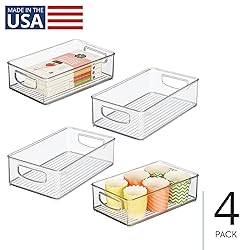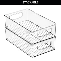 SMART STORAGE - The iDesign Plastic Storage Bin features an open-top design for easy accessibility, and its clear construction offers unobstructed views of food items, making it easy to grab snacks, boxed foods, and more inside pantries and cabinets; Set of 4 STACKABLE - Raised feet allow bins to stack neatly while conserving space; Two comfortable carry handles facilitate easy transport around the kitchen; Bins also fit neatly inside kitchen drawers to organize cooking utensils, small gadgets, and more EASY ORGANIZATION - Its versatile design suits all your storage needs and organizes an array of household essentials, including toys and small figurines in the playroom, work or craft supplies in the office, toiletries in the bathroom, and more QUALITY CONSTRUCTION - Made of durable, shatter-resistant plastic; Food safe; Fridge and freezer safe; EASY CARE - Clean with mild soap and water; Do not place in dishwasher MADE TO FIT - Storage bin measures 10" x 6" x 3" high / 25,4 cm x 15,2 cm x 7,6 cm
