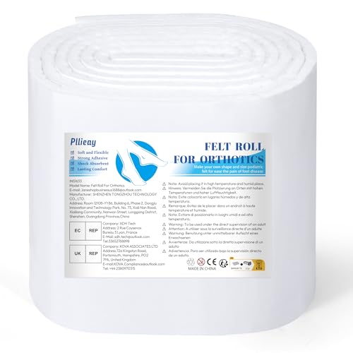 Pllieay Thickened Adhesive Felt Padding, 1/3" Thick 6" x 2.5yd Quality Rayon Blend Orthopedic Felt Roll, White Felt Adhesive Roll for Providing Cushioning and Support in Pain Foot