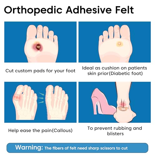 - Versatile Uses: These adhesive felt pads can provide support or protection for symptomatic areas like: Felt pads for Morton’s neuroma, Metatarsal felt pads, Arch supports, Dancer’s padding, Ischemic wound care. Also suitable for plasters, orthopedic braces, and under-splint padding