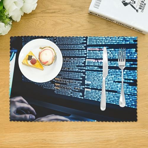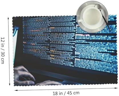 Color: Programmer Programming Code Printed Placemats.Whether it is a banquet or a family meal, the simple and exquisite Placemats make every meal have a sense of ceremony. Exquisite design and elegant looking add more fun to your dining table.Our Placemats the fabric is thick and durability.Our place mat protect the table from scratches and stains, liquid can go through placemats, clean it when finished. Non slip,heat resistant,washable,easy to clean.Match all kinds of styles of furniture, they can be plaed under cups, tablewares,vases andashtrays as decorations to your dining tables and tea tables.Package: Placemats set of 4 pcs, Size: 18"x12", Fit almost any kitchen, dining room, patio, or home decoration.