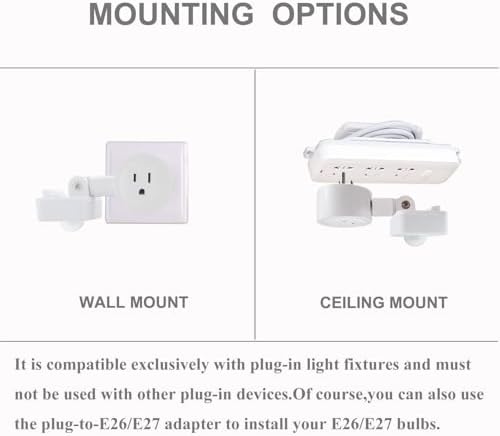 - Easy Installation:Simple plug the motion sensor outlet into the ceiling/wall outlet,and plug your lights/lamps into this outlet.No tools or wiring needed.It is compatible exclusively with plug-in light fixtures and must not be used with other plug-in devices.Of course,you can also use the plug-to-E26/E27 adapter to install your E26/E27 bulbs
