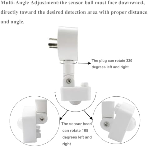 - Multi-angle Adjustment:Both the sensor head and the plug can be rotated to meet your sensing needs at different angles,but the sensor bulb must be facing downward,directly toward the desired detection area with proper distance and angle
