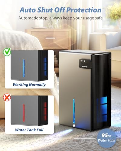 - 【Versatile Use Across Different Spaces】Ideal for rooms up to 800 sq. ft., including bedrooms, bathrooms, kitchens, closets, RVs, and small basements, the ONWORK dehumidifier helps maintain humidity below 45%, reducing allergens, mold risk, and musty odors for a healthier indoor environment.