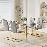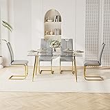 KATBOC 51" Modern 5-Piece Dining Table Set for 4 Rectangular Glass Table with 4 Upholstered Leather Chairs, Seats 4 Ideal for Kitchen Dining Room(Gray&Gold)