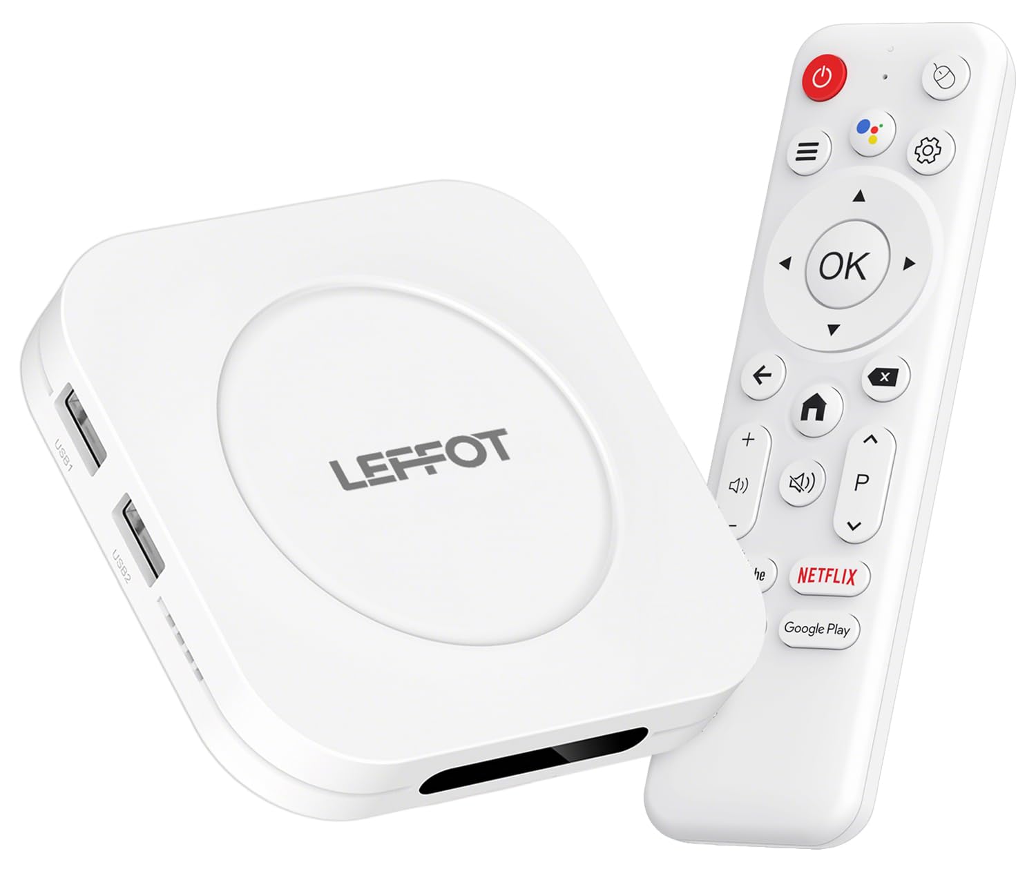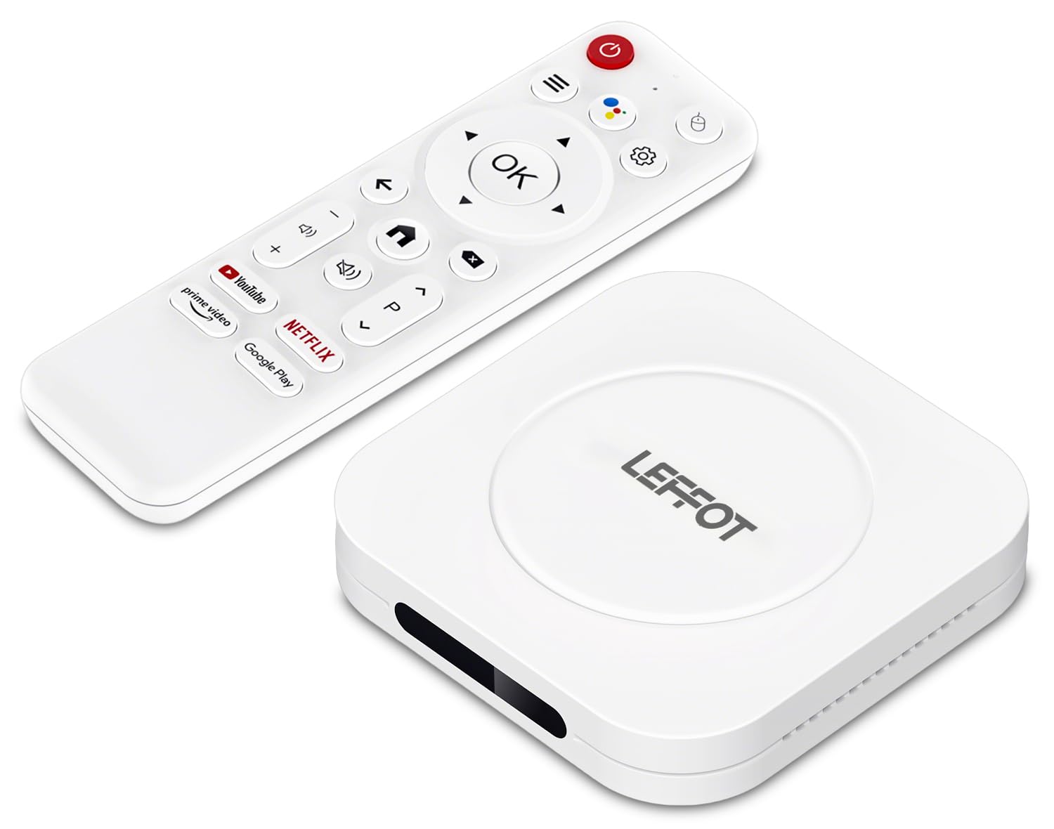 Android 14.0 TV Box 2025, LEFFOT RK3518 4K Ultra HD Streaming Device for TV, 2GB RAM 16GB ROM, Smart TV Box with Voice Remote, 2.4G & 5G WiFi 6, BT 5.4, USB 3.0, HDR10, Rockchip RK3518 Quad-Core A53