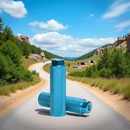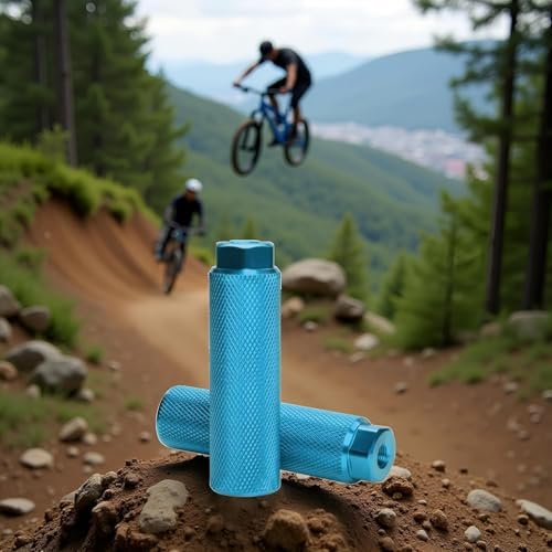 2 Pcs Blue Aluminum Alloy Bike Pegs, Bike Pegs Aluminum Alloy Anti-Skid Lead Foot Bicycle Pegs BMX Pegs for Mountain Bike Cycling Rear Stunt Pegs Fit 3/8 inch Axles Bike Pegs Accessories BMX Bike