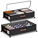 DCET Under Bed Storage with Wheels - Rolling Underbed Containers with PVC Clear Lid & Dividers, 600D Oxford Fabric, PU Leather Handles, Adjustable Magic Tape Partition, XXL 66L (2, Black)