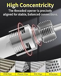 Dual-Function Pipe Tool for Easy Threading:Cut internal and external pvc pipe threads with one pipe tool No need to switch threader tools Save time and get clean threading every time High-Precision Pipe Threading with Alloy Steel Build:Thread pvc pipe accurately with this heavy-duty pipe threading tool Alloy cutting edges deliver fast clean results for pros and DIY users Fast Pipe Threading Using Drill-Compatible Tool:This pvc threading tool fits your electric drill and cuts pipe threads fast Just attach and go Great for tight spaces and on-site repairs Sharp and Durable Pipe Threader for Clean Threads:The pipe tool uses sharp dies to make tight leak-free threads on pvc pipe No slips or misalignments even with frequent use Works on All Common Pipe Types:This pipe threading tool handles pvc pipe and other plastic pipe types like ppr and mpp It’s your go-to threader for repairs and installs Portable Pipe Tool for Home and Field Use:A lightweight pipe threader perfect for home jobs or outdoor projects Easy to carry and use anywhere threading pvc pipe is needed Reliable Threader Tool for Daily Pipe Work:With stable threading action and tough alloy build this pipe tool handles your daily pvc pipe threading tasks without losing performance