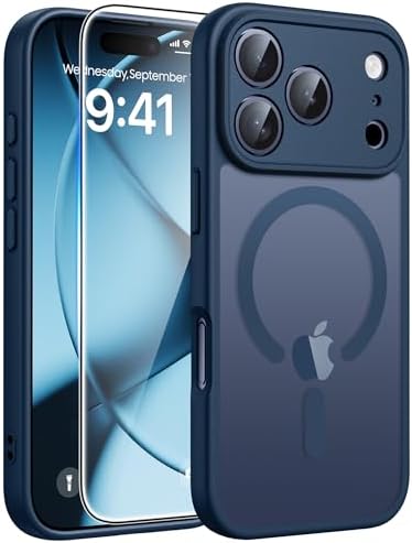 FNTCASE for iPhone 17 Pro Case: [Compatible with Magsafe] Translucent Matte Cases with [Full Camera Protection] [Screen Protector] Military Grade Shockproof Protective Phone Cover - Blue