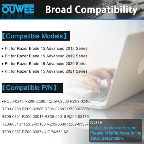 - 【Fully compatible and high stability】①Fit for Razer Blade 15 Advanced 2018 GTX 1060 LINGREN 15(i7 8750H) RZ09-02385 RZ09-02385W71-R3W1 RZ09-02385E92-R3U1 RZ09-02386 RZ09-02386E91 RZ09-02386E91-R3U1, Razer Blade Advanced 15 2019 RZ09-0288 RZ09-02886 RZ09-02887 RZ09-02888 RZ09-02887E92-R3B1 RZ09-0301 RZ09-03017 RZ09-03018 RZ09-03017E02-R3B1 RZ09-03137 RZ09-03138, Razer Blade 15 Studio Edition RZ09-03135 Series, Razer Blade Advanced 15 2019 RTX 2070 Max-Q (i7-8750H )Series, Razer Blade 15 Advanced 2021 Series RZ09-0367BGC3-R3G1 RZ09-0367BED3-R3B1 RZ09-0367BEC3-R3U1 RZ09-0367CE53-R3B1 RZ09-0367CED3-R3E1 RZ09-0367CFD3-R3F1 RZ09-0367BND3-R3N1 RZ09-0367CEC3-R3E1 RZ09-0367CEC3-R3B1 series