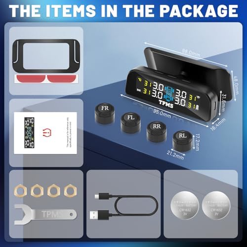 - Real-Time Monitoring& 6 Alarm Modes:TPMS is equipped with 4 accurate sensors.Our tire pressure monitoring system can real-time alert you to issues such as fast/slow tire leaks, high/low pressure, sensor disconnection,extreme temperatures and low sensor batteries, ensuring you have a safe and comfortable journey. Multiple real-time warning modes help prevent blowouts and tire damage, ensuring you can pay attention to these issues in a timely manner and reducing the probability of accidents