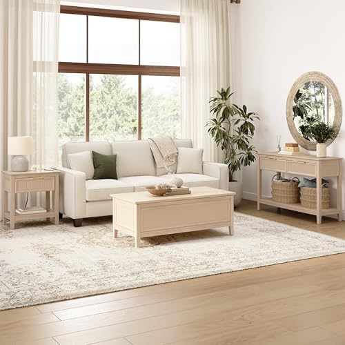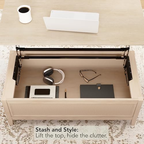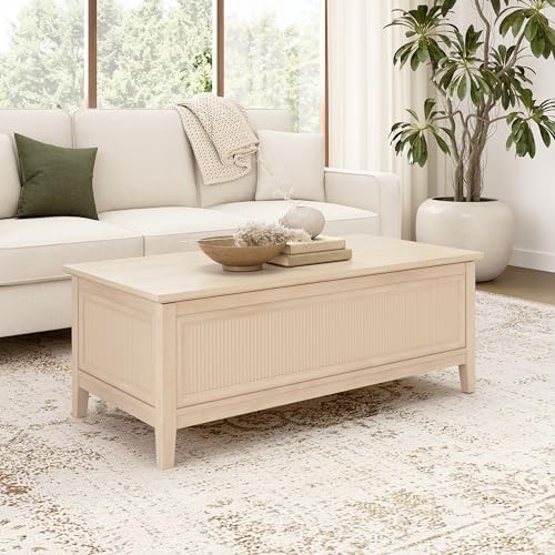 Bush Home 47-inch Fluted Lift Top Coffee Table with Storage, Living Room Furniture, Camille Collection, Natural Birch Beige