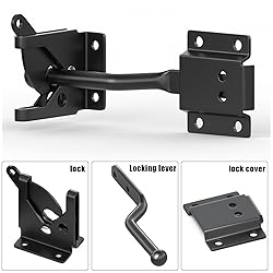 Gravity Gate Latches: Automatic gate latch made from heavy gauge steel construction with superior black powder coat finish & zinc plated corrosion resistance, designed to offer simple but solid security for inward and outward swinging gates and doors, features a self-latching fingertip release-can also be operated with a wire Easy Install: Our gate latch features heavy duty design & a self-latching fingertip release , the kit comes with all the parts and accessories, including 10 perfect fit screws, for easy installation,enjoy the project of DIY and protect your garden Keyless Convenience: The lever has an automatic pull lock and is compatible with all types of outdoor side gates, large and small, including wrought iron, vinyl, and PVC. The fancy black coated steel is sure to match any back yard decor Rust-Resistant and Weatherproof: Gate latch made from high-quality steel, this gate latch is designed to resist rust and withstand various weather conditions. It ensures long-lasting performance and reliability, making it ideal for outdoor use Fence Latch Multipurpose: Our child proof wood gate latch perfect for wood gates, wooden fence, vinyl gate, it can also be installed in aluminum alloy doors or metal gates(Tips: Please replace professional hard screws), Use on garden, vegetable farm, orchard, backyard, deck, sheds, ranch, baby gate, pool gate, barn door, carports, privacy fence, side fences, cattle, dog kennels, sheepfold, stable, animal pens or chicken coop door