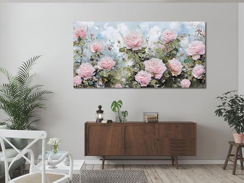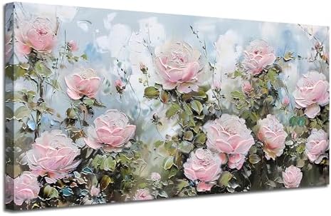 Ardemy Rose Canvas Wall Art Large Floral Pictures Wall Decor Living Room Pink Flower Textured Paintings Artwork for Walls Bedroom Kitchen Dining Room Home Office, 40"x20"