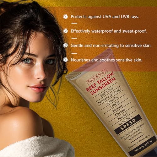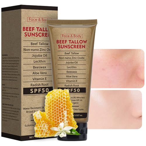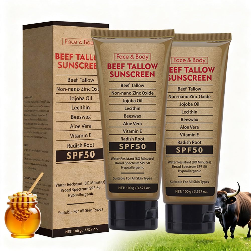- NATURAL GRASS-FED BEEF TALLOW FORMULA: Enriched with natural beef tallow, known for its skin-nourishing properties, this sunscreen not only protects but also nourishes the skin, making it suitable for daily use to protect delicate skin back to a healthy state.