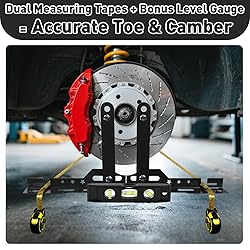 🔧【Quick Toe Adjustments – No Caliper Removal Needed】 This wheel alignment tool set allows you to perform precise toe alignment without removing brake calipers—saving time and effort in your garage or shop. A must-have alignment plates for DIYers and pros alike. 🧰【Heavy-Duty Plates with Dual Measuring Tapes】 The wheel alignment kit includes two toe plates crafted from solid iron with anti-rust coating , , plus two durable measuring tapes (imperial units). Accurately measure wheel toe and check for toe-in/toe-out at home or on the job 🚘 【Universal Fit for Most Vehicles】 Whether you're adjusting the alignment on a car, truck, Jeep, or SUV, this toe plates wheel alignment tool fits most 4-wheel vehicles. Ideal for use with lifted trucks, lowered cars, and off-road setups. 📐 【DIY-Friendly Alternative to Camber Gauge】 Skip the expensive shop visits. With this car alignment tool kit, you can check and correct wheel alignment at your convenience. Great for those who rotate their own tires or install new suspension parts. ⚠️【Know Before You Buy – What It Does (and Doesn’t) Do】 This toe alignment tool is made for toe alignment using measuring wheels and measuring tools—it does not measure camber or caster. It’s perfect for quick adjustments, but not a replacement for a full alignment rack.