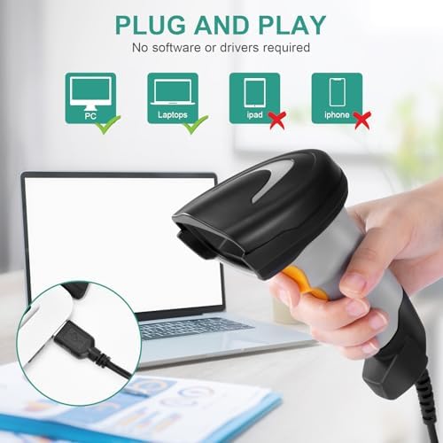 - 【Versatile】: This handheld usb scanner can be used in supermarkets, convenience stores, warehouses, libraries, bookstores, pharmacies, retail stores, for document management, inventory tracking, POS (point of sale), etc