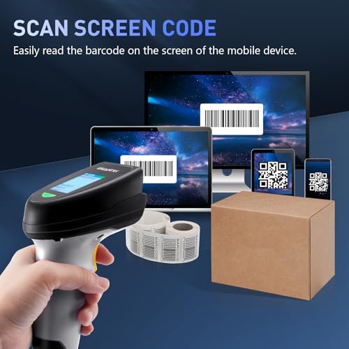 Barcode Scanner Wireless, QR Code Scanner Handheld Bar Code Scanners with Base 2 in 1 USB Wired Connection & 2.4G Wireless 1D&2D&PDF417 Data Matrix Automatic Barcode Reader