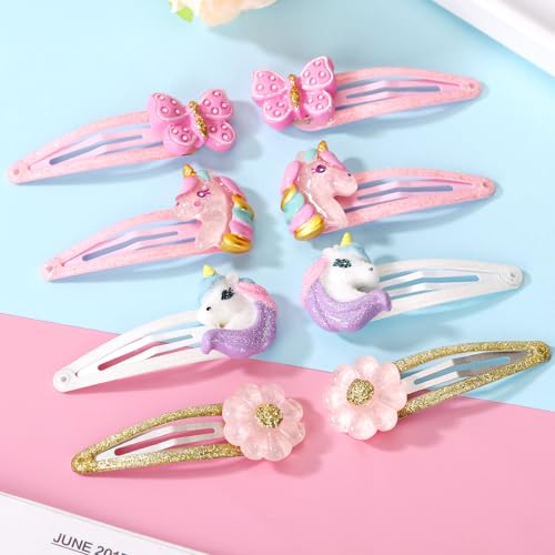 8Pcs Flower Hair Clips for Girls, Butterfly Metal Snap Clips,Cute Glitter Toddler Girls Unicorn Hair Accessories for Children, Infants, Toddlers, Kids - Flower