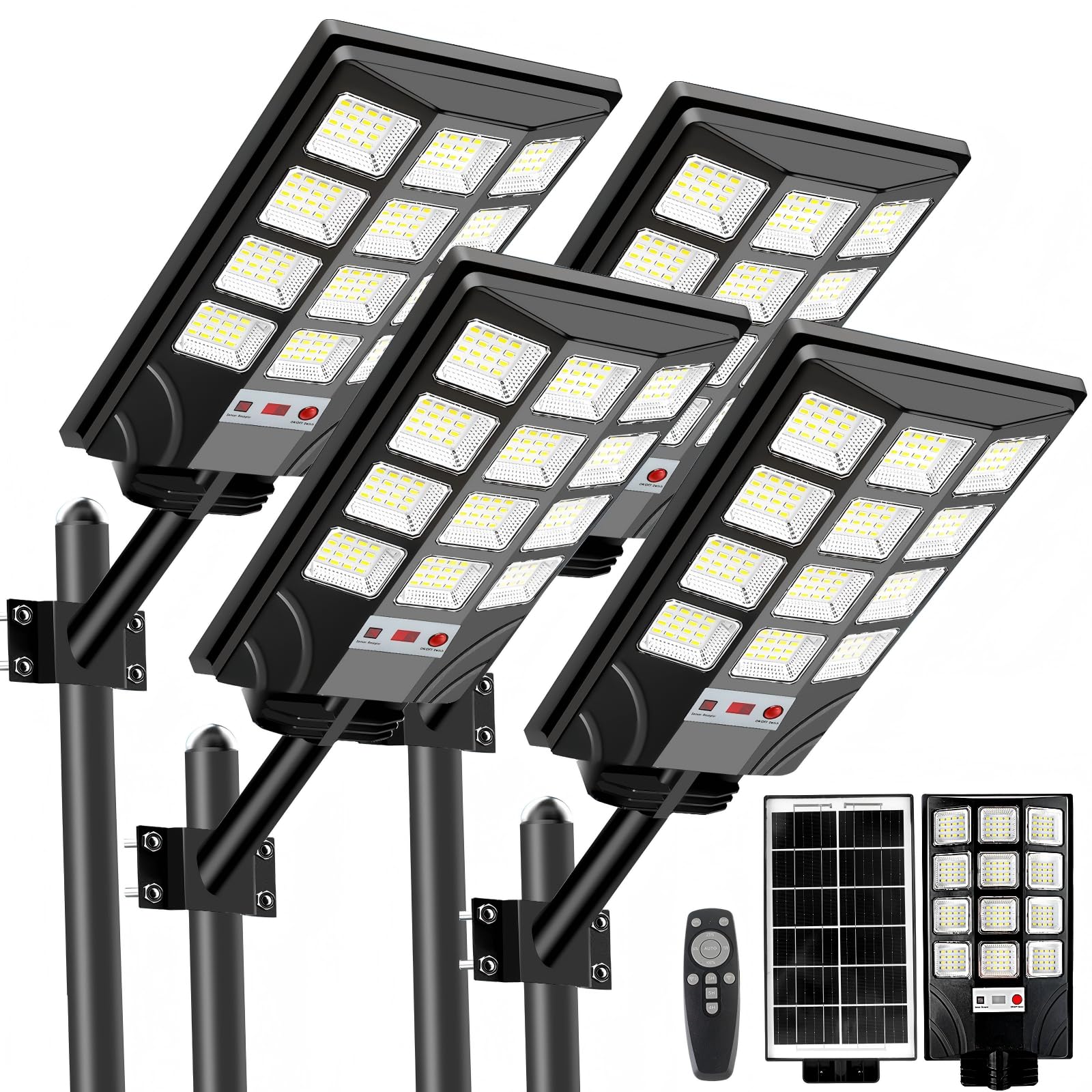 4-Pack Solar Street Lights Outdoor, 13000LM 6500K Waterproof LED Solar Flood Lights with Motion Sensor, Dusk to Dawn Solar-Powered Light for Outside, Security Lights for Parking Lot Yard Driveway