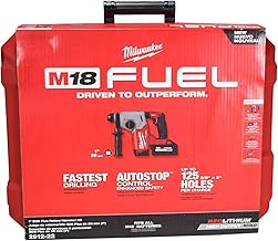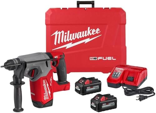 The MILWAUKEE M18 FUEL 1" SDS Plus Rotary Hammer Kit is the next generation of cordless rotary hammers delivering ultimate jobsite performance and productivity. The M18 FUEL 1" SDS Plus Rotary Hammer is the fastest drilling rotary hammer in its class, includes AUTOSTOP Control for enhanced safety, and can drill up to (125) 3/8" x 2" holes per charge when paired with the M18 HIGH OUTPUT XC6.0 Battery. The POWERSTATE Brushless Motor delivers 2 ft-lbs of impact energy, 1,330 RPM, and 4,800 BPM, providing speed and power in the most demanding applications. REDLINK PLUS intelligence tool technology ensures maximum rotary drill performance and protects it from overload, overheating, and over-discharge. The M18 REDLITHIUM HIGH OUTPUT XC6.0 Battery delivers 50% more power while running 50% cooler than the M18 REDLITHIUM XC batteries. This hammer provides maximum control and enhanced safety with the AUTOSTOP Kickback Control. This feature prevents over-rotation if the tool gets bound up while drilling in rebar or hard aggregate. Milwaukee's AVS Anti-Vibration System minimizes vibration for maximum comfort.