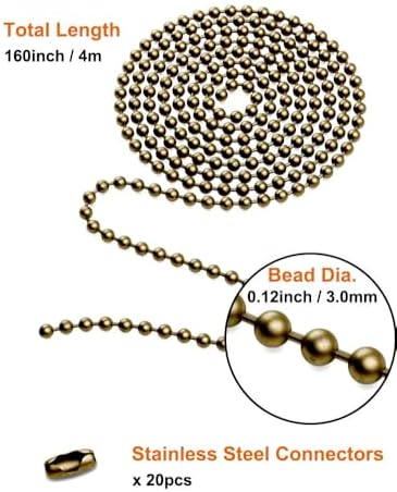 160-inch Ceiling Fan Pull Chain, Rustproof 3mm Pull Chain Extension for Ceiling Fans and Light Fixture, Beaded Ball Chain with 20 Matching Connectors (Bronze)