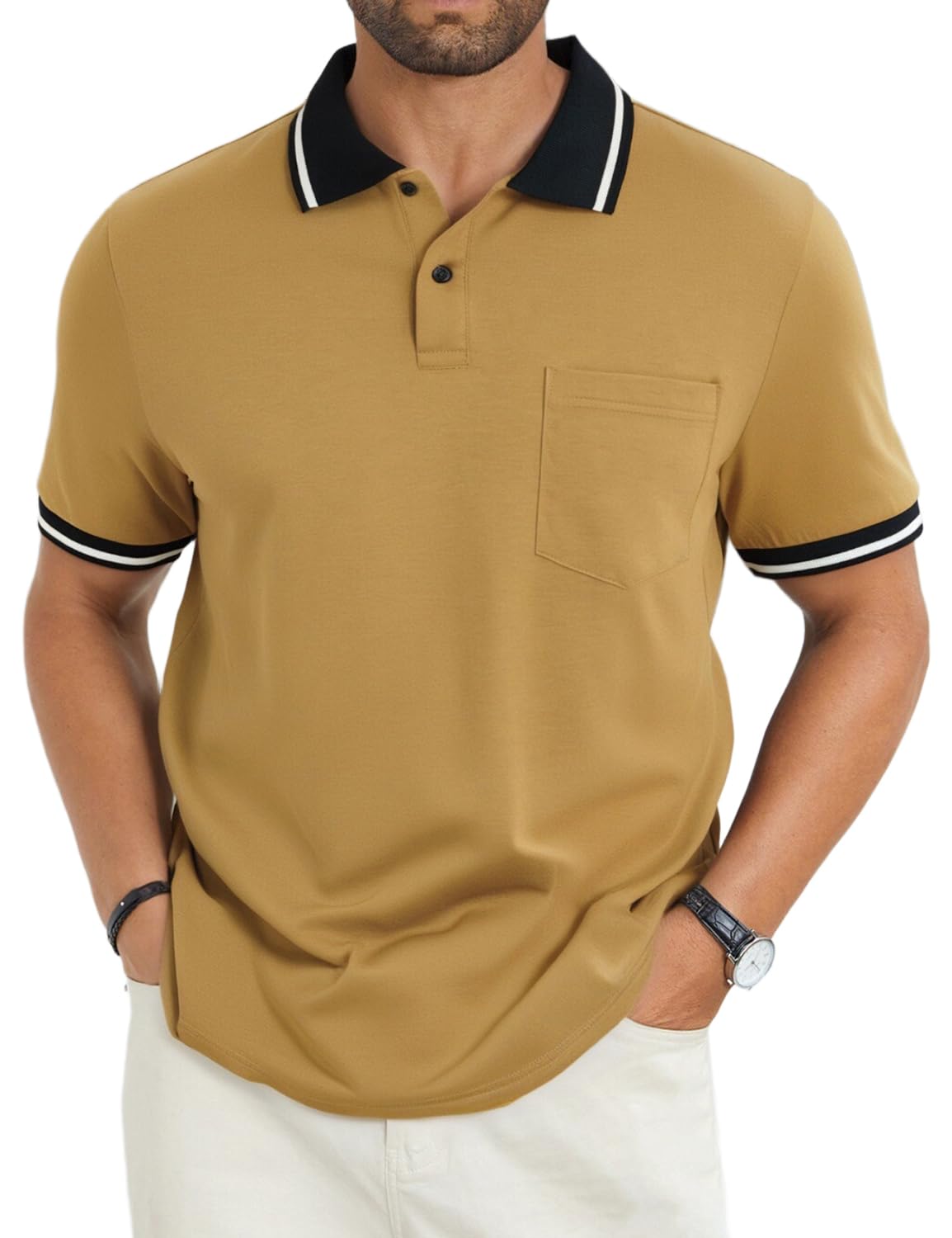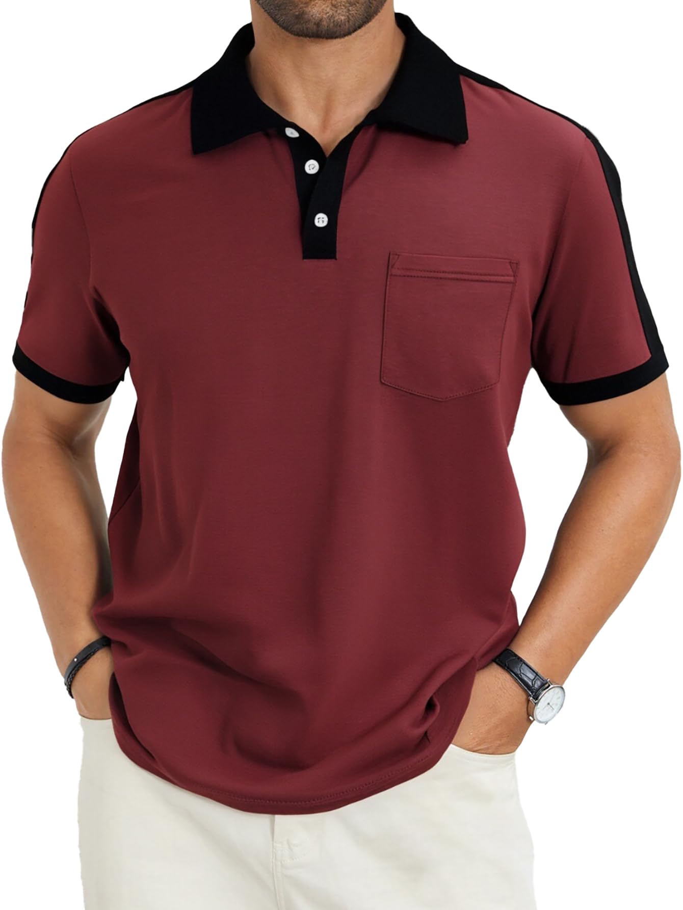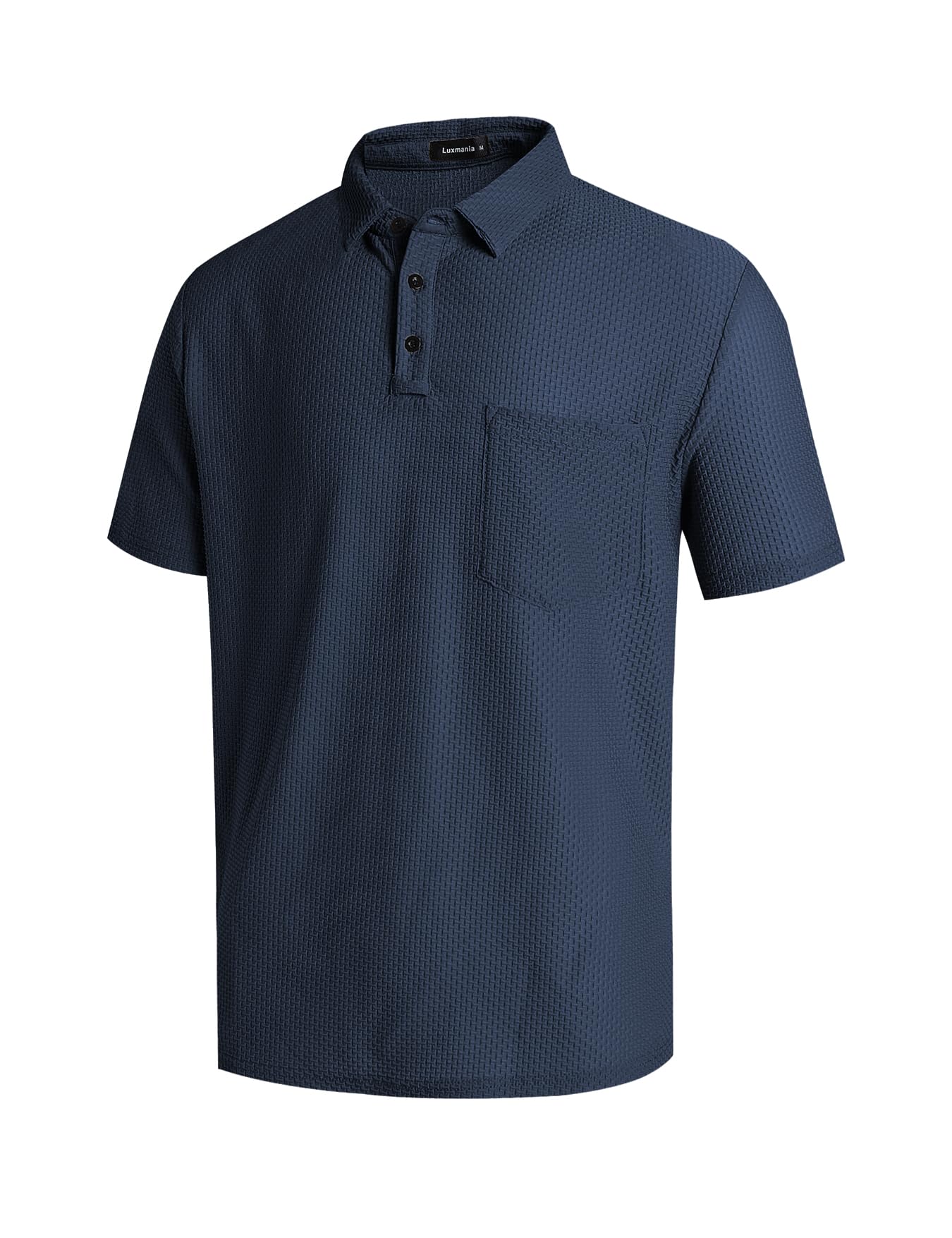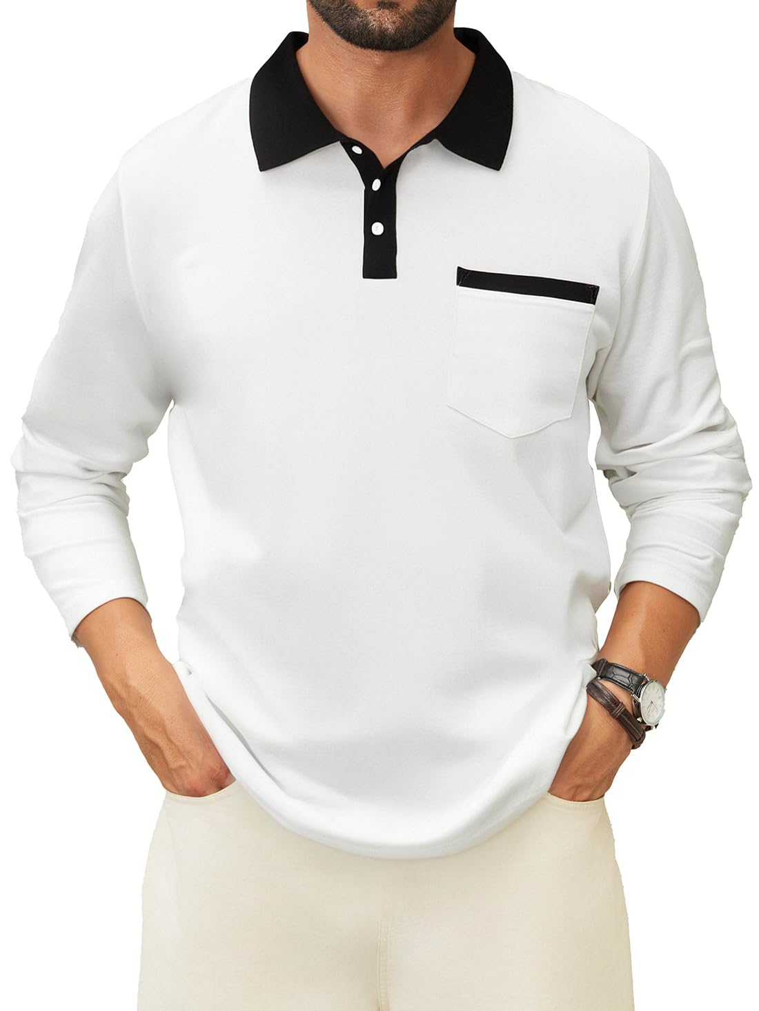Men's Casual Long Sleeve Polo Shirts Cotton Polos T Shirt Classic Button Collared Golf Shirt with Pocket Navy M