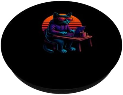 Retro Cat With Code Software Skills Computer Programmer PopSockets Adhesive PopGrip