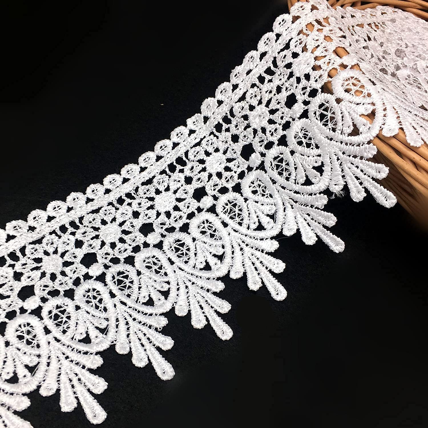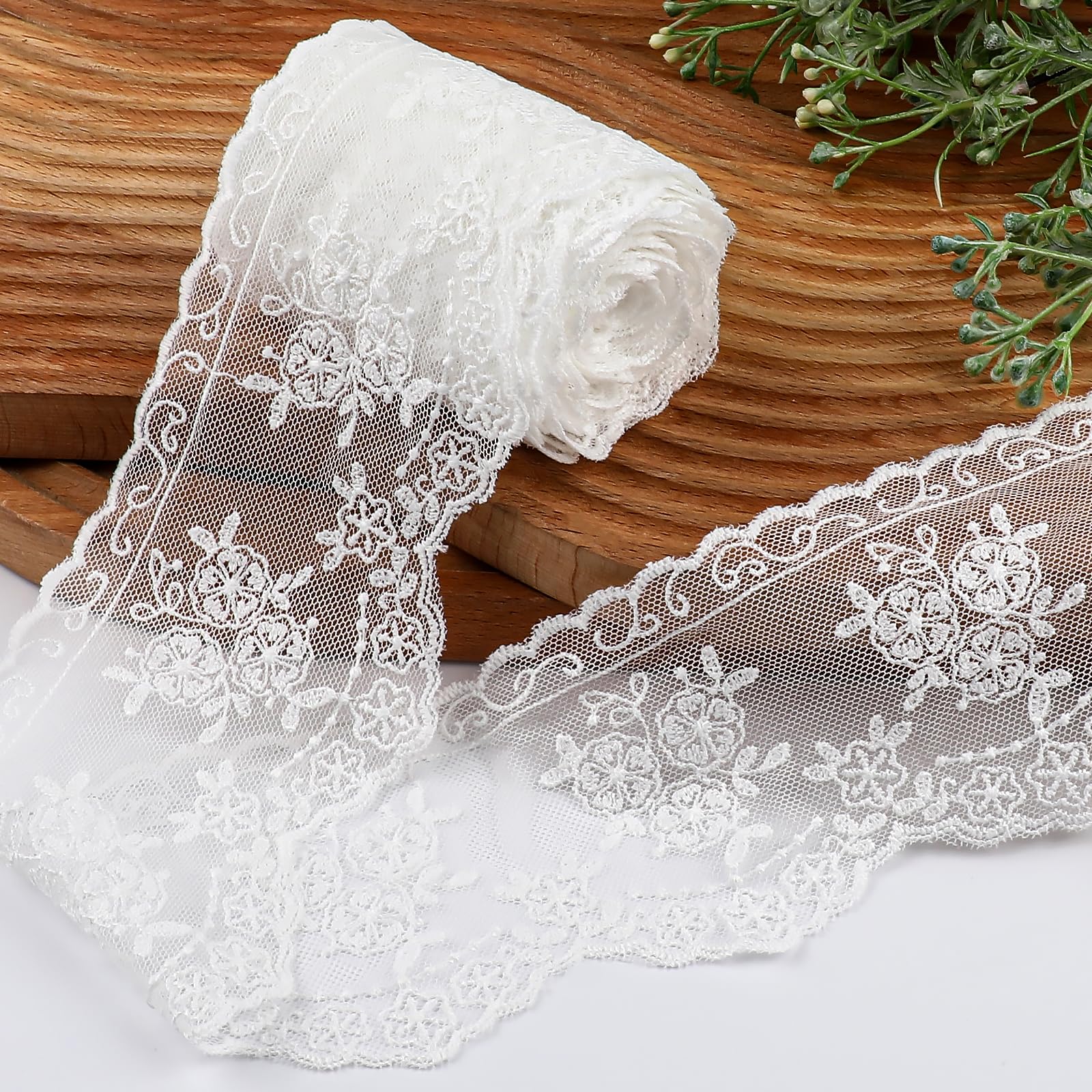 - ELEGANT & INTRICATE DESIGN: Featuring a classic floral lace pattern with exquisite embroidery, this white lace trim ribbon adds a romantic, sophisticated touch to wedding dresses, costumes, curtains, and handmade crafts.