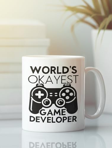 Funny Gaming Programmer Mug – Presents for Game Devs, Coder, Designer – World's Okayest Developer Coffee Cup, Unique Novelty Idea