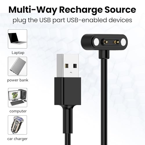 RuenTech Compatible with TickTalk 5 Smart Watch Charger, 3.3FT Replacement Charing Cable Magnetic Charger for TickTalk 5 Kids Smart Watch (Black&Black)