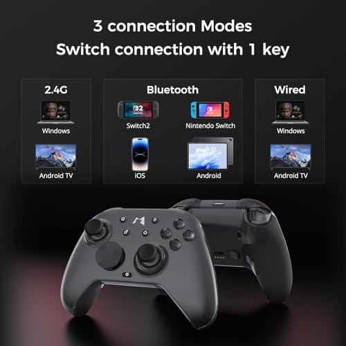 - ✅ 【Universal Compatibility & Ergonomic Design】 Works seamlessly across Switch, Windows, Steam, Android, and iOS (Genshin Impact supported). Features sweat-resistant rubberized grips, a replaceable D-pad (cross/circle), and a 1000mAh battery providing up to 15 hours of gameplay. Comes with a PU travel case, USB-C charging cable, and a wireless dongle for plug-and-play precision.