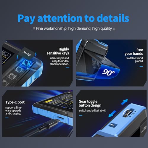 - 【Longer Battery Life】FNIRSI DSO152 digital oscilloscope has a built-in 1000 mAh high-quality lithium battery, which can be used continuously for about 4 hours after being fully charged. Type-C interface supports data transmission and charging, firmware upgrade